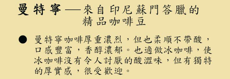 厚重濃烈,卻也柔順不帶酸的精品咖啡